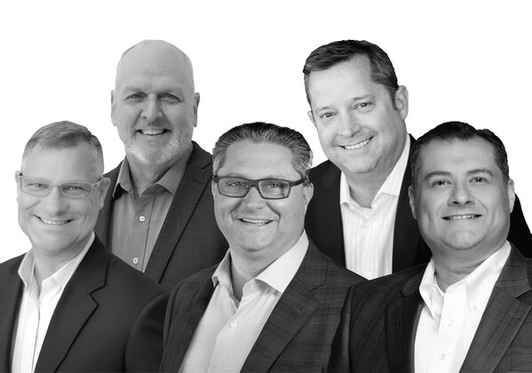 Image courtesy of Newmark. Back Row, left to right: Chris Shaida and David Stanford. Front Row: John Seaton, Dan Sterk and Phillip McCorkle. All five join Newmark in leadership roles under the Newmark RF brand, bringing decades of experience in strategy, operations, technology and client advisory to the company.